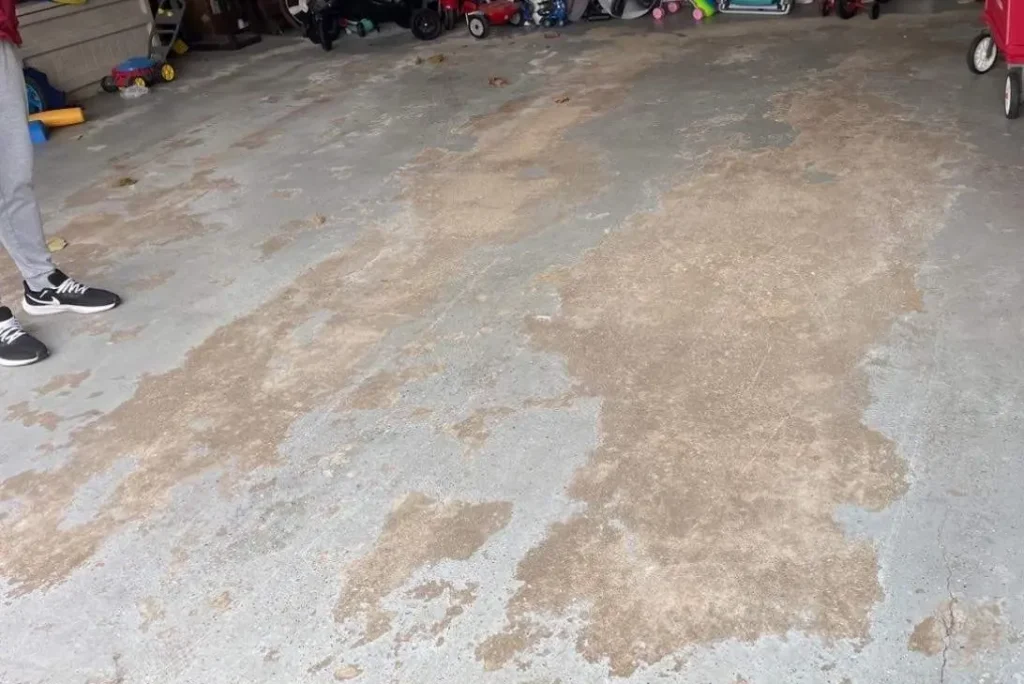 The garage floor was in rough shape. It had deep cracks, pitting throughout the surface, and old paint that was failing. The concrete was starting to break down, which meant a standard coating wouldn’t last without proper prep.